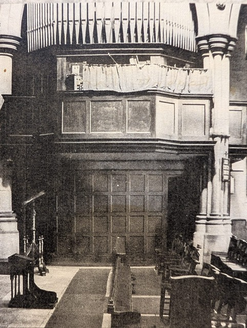 Later a fine reredos by Sir Ninian Comper was added to its east end. The church was a great success, with a thousand people attending services in the 1850s and later, filling the galleries and listening to the fine Father Willis organ (see photos below of Comper, his first Reredos (destroyed in the Second War) and the organ).